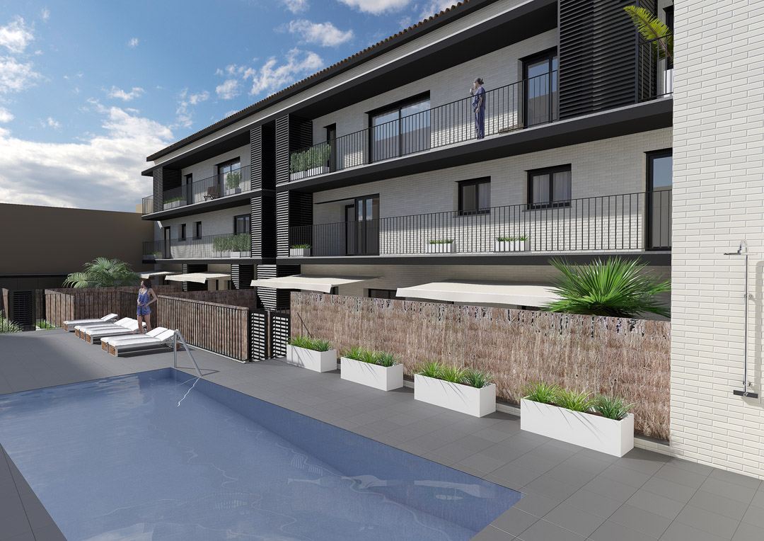El edificio cuenta con 14 pisos con terrazas y áticos en forma de dúplex. Disponen de garaje subterráneo con plazas de aparcamiento y trasteros. Lo más destacado es la piscina compartida, que se encuentra en el patio interior.