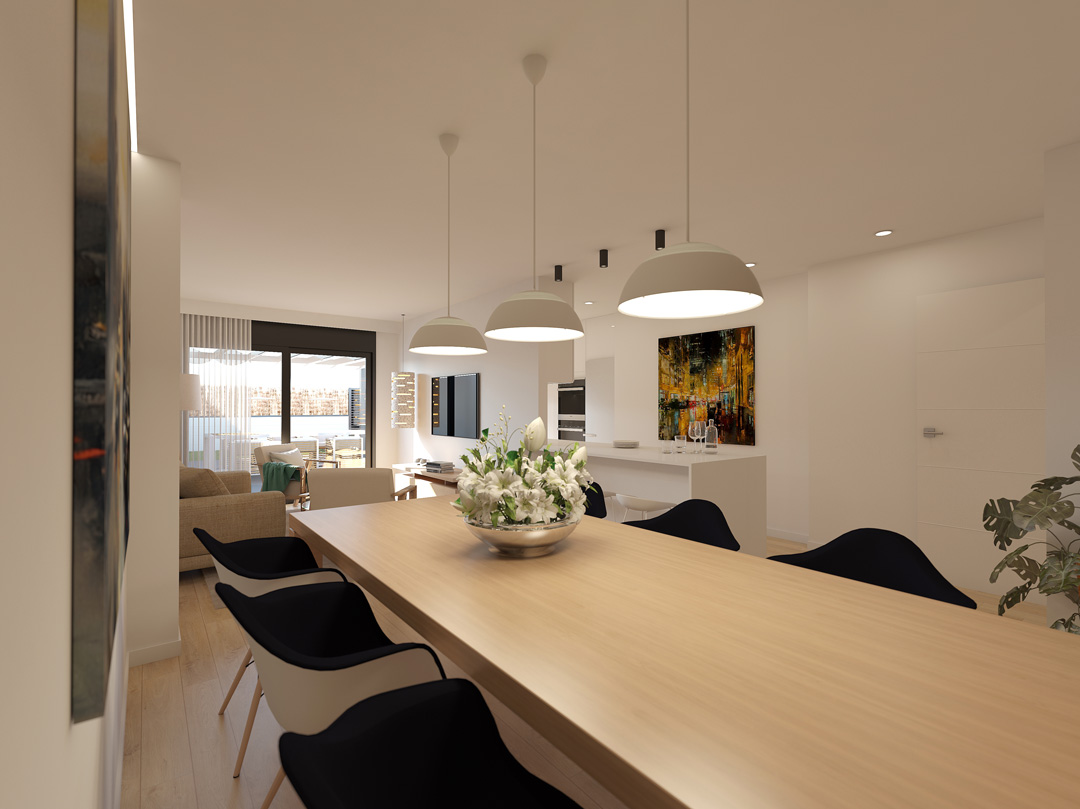 Las nuevas viviendas se caracterizan por su tecnología punta en el ámbito de la domótica o ‘smart houses’ y sus materiales de alta calidad. Éstas se resuelven con elegancia y modernidad, y todos ellos cuentan con luz natural a lo largo del día y muy buena iluminación, dada su orientación este-oeste. Las generosas zonas de balcón y terraza invitan a la relajación.